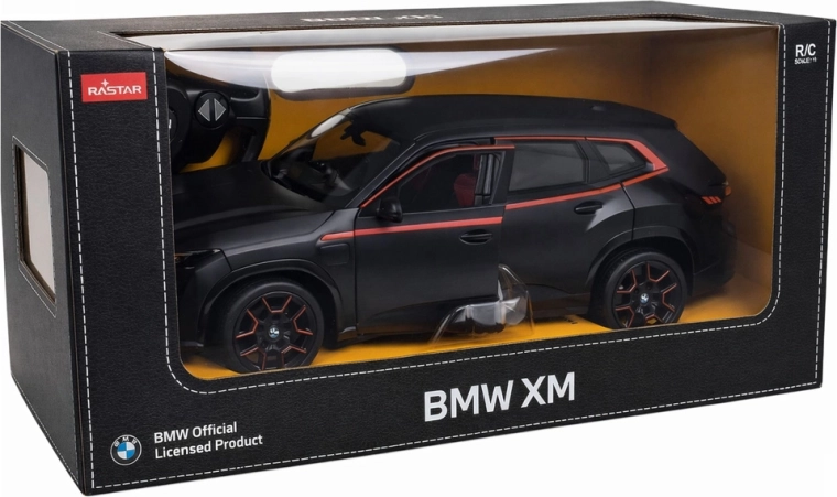 Licencovaný model BMW XM v mierke 1:14 od značky RASTAR prináša realistický dizajn, pohyb všetkými smermi a spoľahlivé ovládanie 2,4 GHz. Čierne športové prevedenie s červenými akcentmi, funkčnými prednými a zadnými svetlami, otvárateľnými dverami a gumovými pneumatikami zaručuje zábavu pre deti aj dospelých.