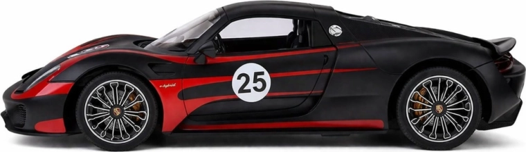 Užite si realistickú jazdu s legendárnym supersportom PORSCHE 918 Spyder v prevedení Rastar. Model v mierke 1:14 verne kopíruje originál – od aerodynamických línií, cez pretekárske lakovanie s číslom 25, až po priesvitné detaily a emblémy. Vďaka rádiovému riadeniu 2,4 GHz je ovládanie stabilné a bez rušenia aj pri jazde viacerých modelov súčasne.