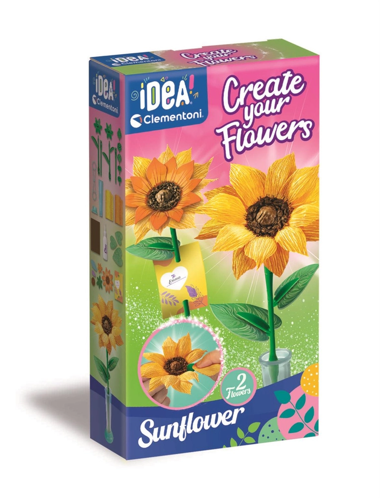 Objavte kreatívnu sadu zo série Idea Art, s ktorou deti ľahko vytvoria dva efektné slnečnicové kvety z krepového papiera. Táto zábavná aktivita rozvíja kreativitu, jemnú motoriku a trpezlivosť, prináša radosť z vlastnoručnej tvorby a ponúka možnosť pripraviť originálny darček pre blízkych. Vyrobené značkou CLEMENTONI s dôrazom na kvalitu a bezpečnosť.