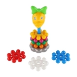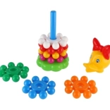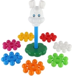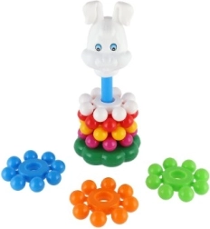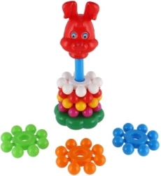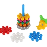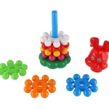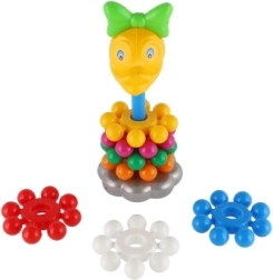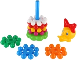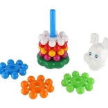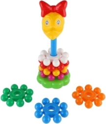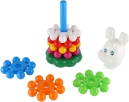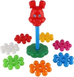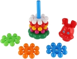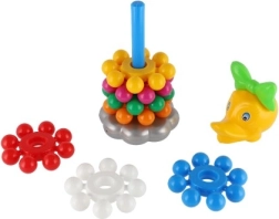 Široké, farebné krúžky sa deťom dobre držia a ľahko sa navliekajú na stredovú tyč. Hra podporuje presnosť pohybov a trénuje koordináciu oko–ruka už od prvých krôčikov.