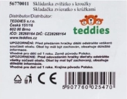 Hračka je vyrobená z odolného, ľahkého plastu s hladkými hranami a je dostupná v 3 variantoch s rôznymi tvarmi krúžkov a zábavnými zvieracími motívmi na vrchole. Praktické balenie v sieťke uľahčuje uloženie aj prenášanie.