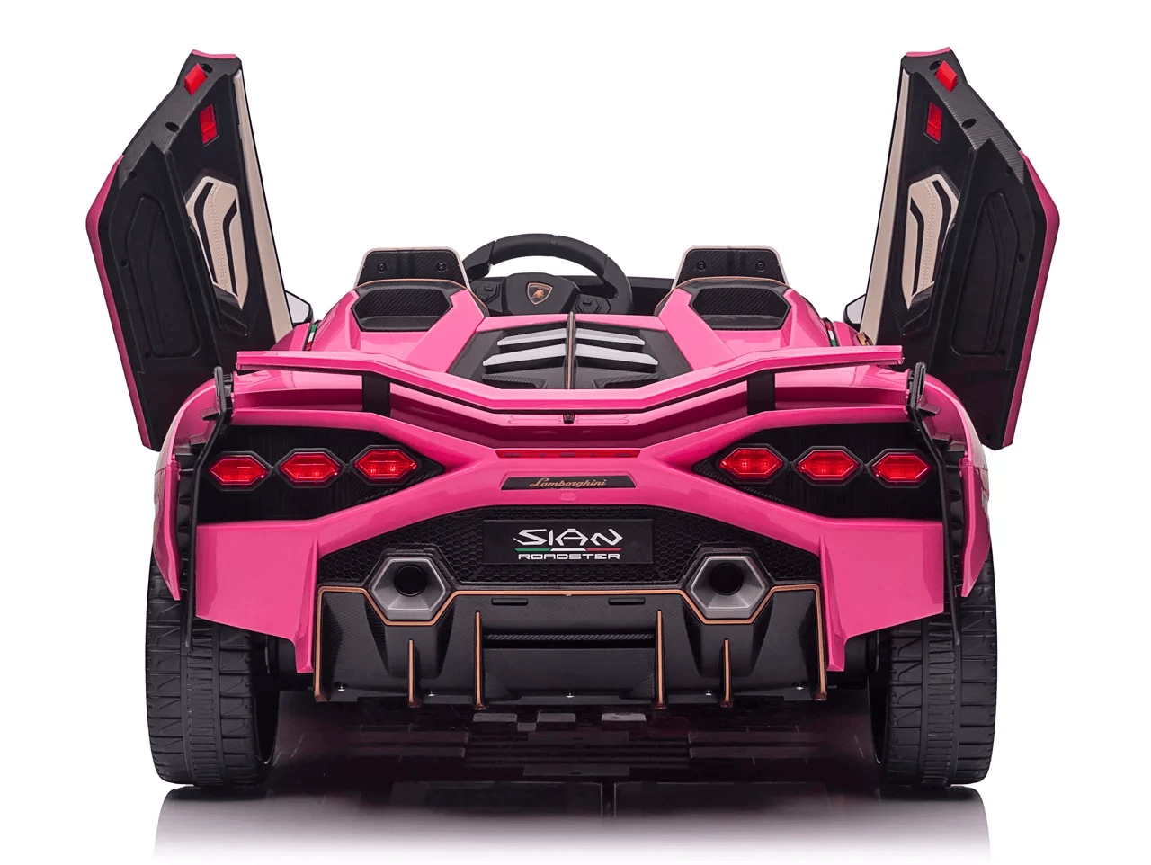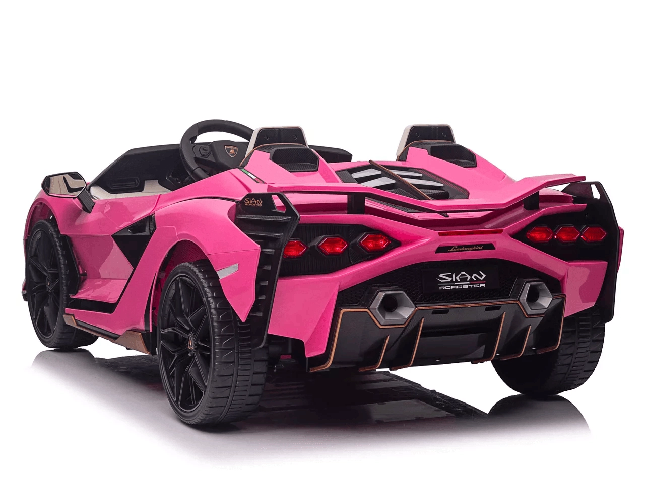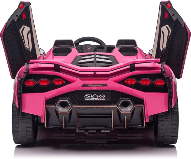 Štýlové detské elektrické autíčko Qileshi Lamborghini Sian v ružovej farbe spája športový dizajn, 4 výkonné motory a bezpečné ovládanie cez 2,4 GHz diaľkový ovládač. Ponúka dvojmiestne sedadlo, otváracie dvere, odpruženie všetkých kolies a multimediálny panel s MP3/USB/Bluetooth pre maximálnu zábavu.