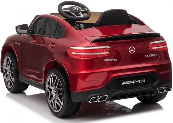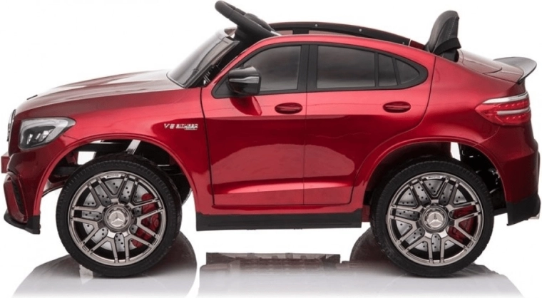 Štýlové detské elektrické autíčko MERcedes-AMG GLC 63 S Coupé v sýto červenej farbe ponúka realistický dizajn, bezpečné diaľkové ovládanie a pohodlnú jazdu vďaka odpruženiu a EVA kolesám. Dva motory 2×30 W, batéria 12 V 7 Ah, plynulý rozjazd a brzdenie, otváracie dvere a bohaté multimédiá s Bluetooth, USB a MP3 zaistia kopec zábavy pre malých vodičov.