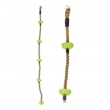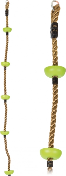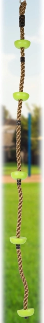 Päť zelených plastových kotúčov je rozmiestnených tak, aby deti ľahko dosiahli na ďalší stupeň a udržali stabilitu pri šplhu.