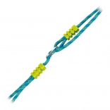 Modré laná so žltými prvkami majú kovové prieťahy a krúžky na rýchle zavesenie a plynulé nastavenie dĺžky až do 200 cm.