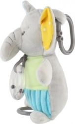 Perfektný hrací spoločník do postele alebo kočíka vďaka bezpečnému klipu, ktorý umožňuje jednoduché zavesenie. Textúrovaný povrch slona podporuje hmatové skúmanie, zatiaľ čo jeho farebný dizajn zaujme zrak dieťaťa.