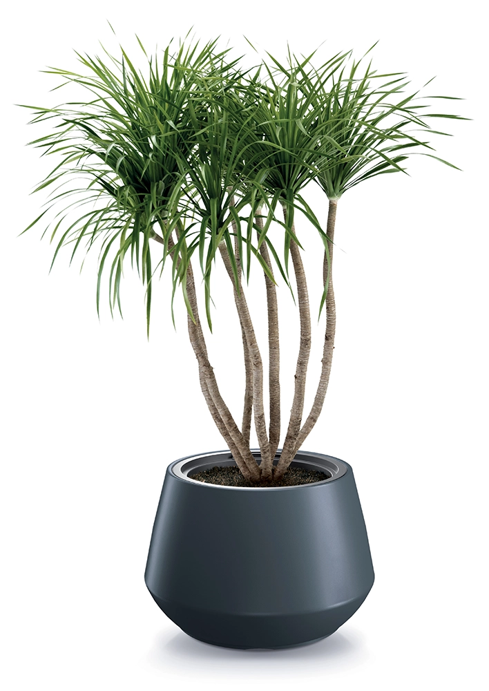 Elegantný kvetináč s vyberateľnou vložkou s priemerom 43,6 cm v antracitovej farbe kombinuje moderný dizajn, odolný plast a jednoduchú údržbu. Je vhodný pre interiér aj exteriér, odolá mrazu a UV žiareniu a vďaka objemu 34 l poskytne rastlinám dostatok priestoru.