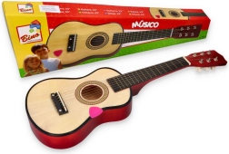 Táto krásna detská akustická gitara Bino 23" je perfektnou voľbou pre začínajúcich hudobníkov. Je vyrobená z kvalitného dreva, čo zabezpečuje ľahkosť aj odolnosť nástroja. Gitara má šesť strún, ktoré je možné ľahko ladiť a vymieňať podľa potreby, čo predlžuje jej životnosť a zabezpečuje skvelý zvuk pri hre.