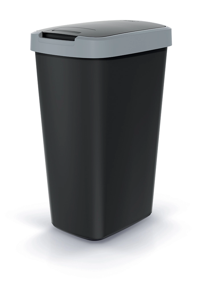 Moderný odpadkový kôš s objemom 45 litrov s chytrým vekom na dva spôsoby otvárania je ideálny do domácnosti aj kancelárie. Vďaka úzkemu tvaru šetrí miesto, má odolné plastové prevedenie a elegantnú kombináciu čierneho tela a svetlosivého veka pre čistý, moderný vzhľad.