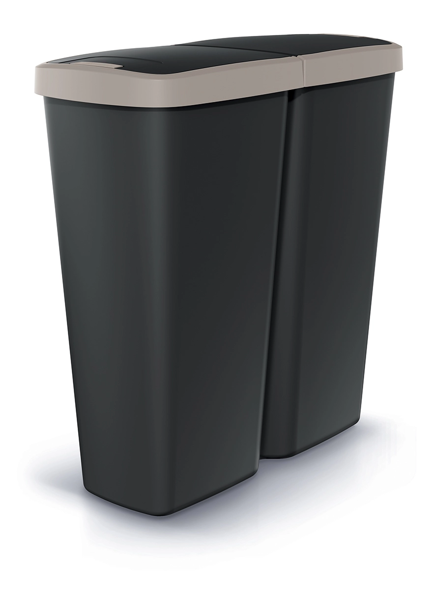 Praktický odpadkový kôš Prosperplast Compacta Q Duo s objemom 50 l je ideálny na efektívne triedenie odpadu v domácnosti aj v kancelárii. Vďaka dvojitému veku s tlačidlovým otváraním ľahko upevníte jeden alebo dva vrecia, takže pohodlne oddelíte zmesový odpad od plastov. Odolný plastový materiál, jednoduchá údržba a kompaktné rozmery zaručujú dlhú životnosť a skvelé využitie aj v menších priestoroch.