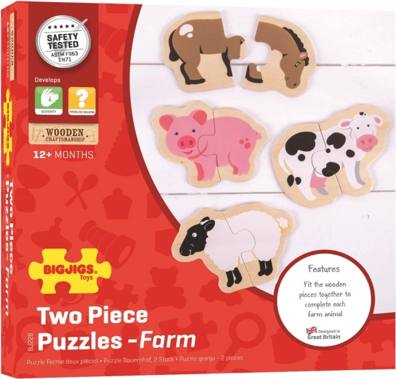 Malí hráči budú fascinovaní snahou prispôsobiť každú časť týchto jednoduchých drevených puzzli, aby vytvorili štyri farebné zvieratká. Každé puzzle je navrhnuté tak, aby rozvíjalo ich jemnú motoriku a učilo ich rozpoznávať tvary a farby. Deti sú povzbuzované k tomu, aby o puzzle hovorili, čo tiež zvyšuje ich slovnú zásobu a komunikačné schopnosti.