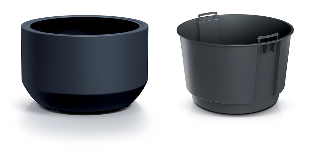 Vyberateľná vložka uľahčuje presádzanie a starostlivosť o rastliny. Umožňuje lepšiu kontrolu zálievky a odvod prebytočnej vody.