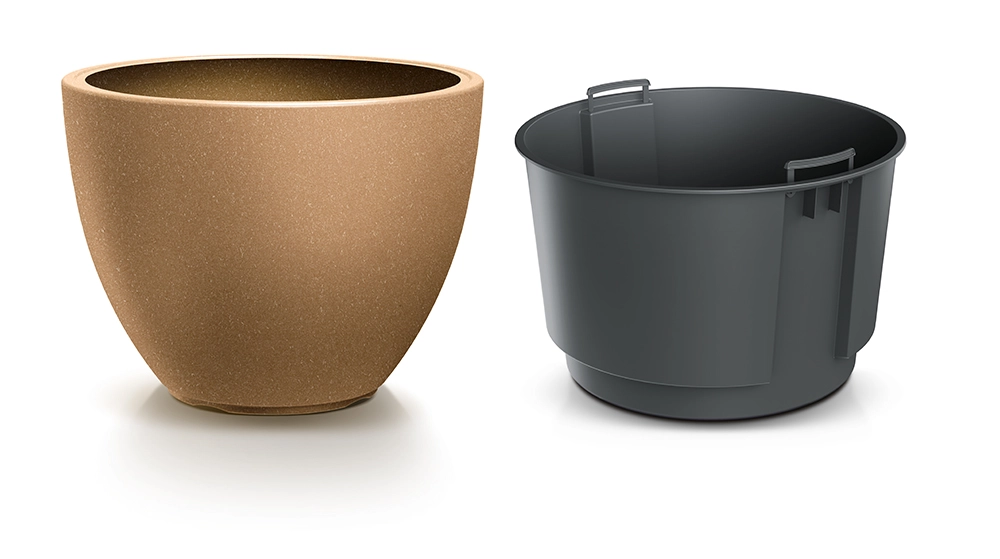 Vyberateľná vnútorná vložka s integrovanými úchytmi uľahčuje výsadbu, presádzanie aj zálievku a zároveň znižuje spotrebu substrátu.