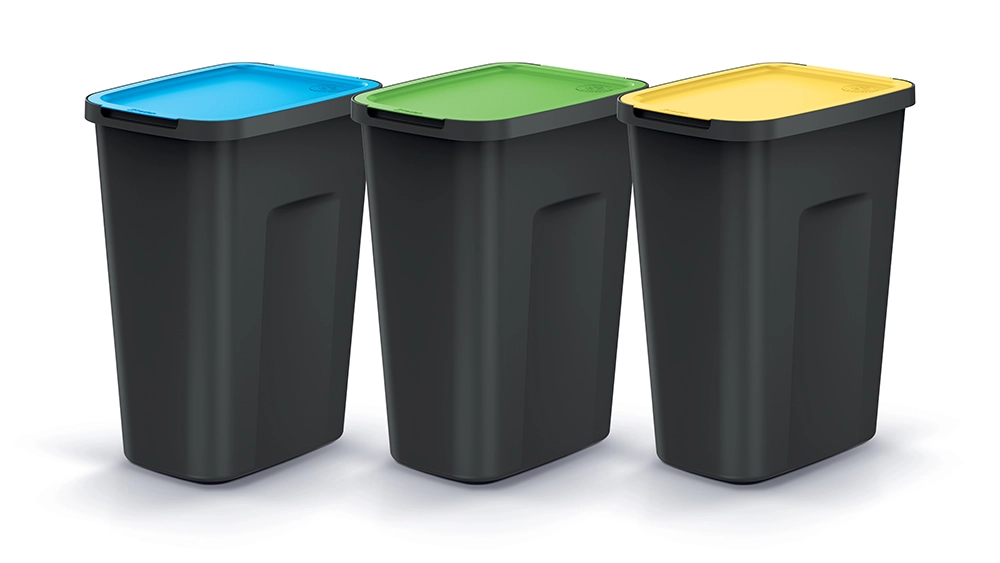 Praktická sada troch košov COMPACTA Q FLAP PLUS s objemom 3×35 l z recyklovaného plastu prináša efektívne triedenie odpadu pre domácnosti aj kancelárie. Kompaktné rozmery, moderný dizajn a veko s funkciou stay open pre pohodlné vkladanie odpadu. Odolný povrch voči alkoholu, tukom a olejom sa ľahko čistí teplou vodou a jemným prostriedkom.