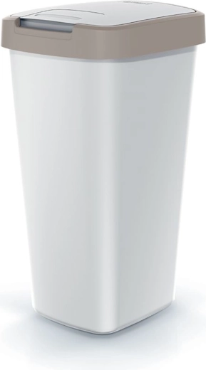 Štýlový odpadkový kôš s objemom 25 l pre domácnosti aj kancelárie kombinuje praktické funkcie a nadčasový dizajn. Odolný plast uľahčuje údržbu, dve možnosti otvárania veka zvyšujú komfort a farebný rám veka proti skĺznutiu vrecka zabezpečuje čistú a prehľadnú prevádzku aj pri triedení odpadu. Vďaka kompaktným rozmerom sa zmestí aj do menších priestorov.