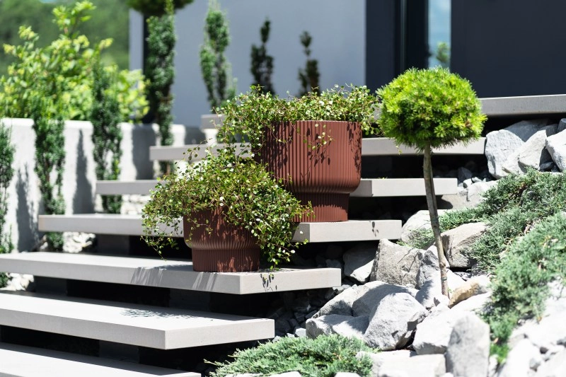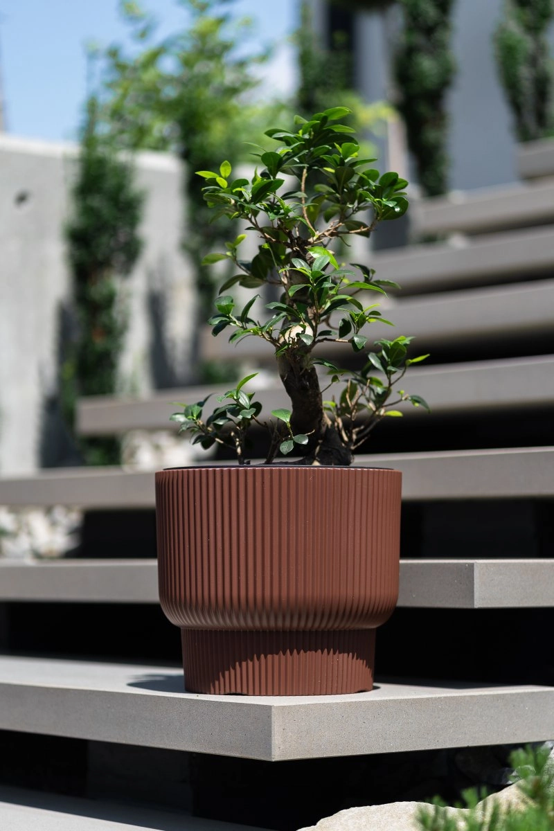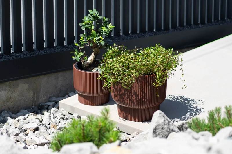 Vertikálne drážky a zvýšená základňa dodávajú kvetináču MILLY nadčasový vzhľad, ktorý skvele ladí s modernou architektúrou aj prírodnými materiálmi.