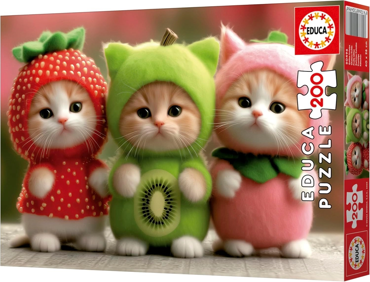 Objavte čaro ilustrovaných mačiatok inšpirovaných ovocím. Puzzle EDUCA v počte 200 dielikov poteší kvalitnou tlačou, sýtymi farbami a presnými výsekmi, vďaka ktorým do seba dieliky dokonale zapadajú. Veľkosť cca 40 × 28 cm po zložení je ideálna pre menšie pracovné plochy a následné vystavenie.