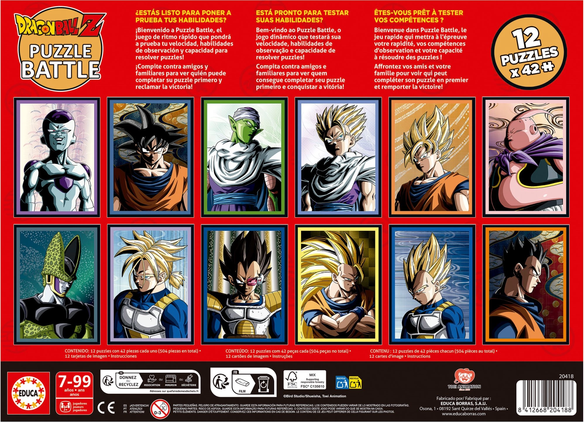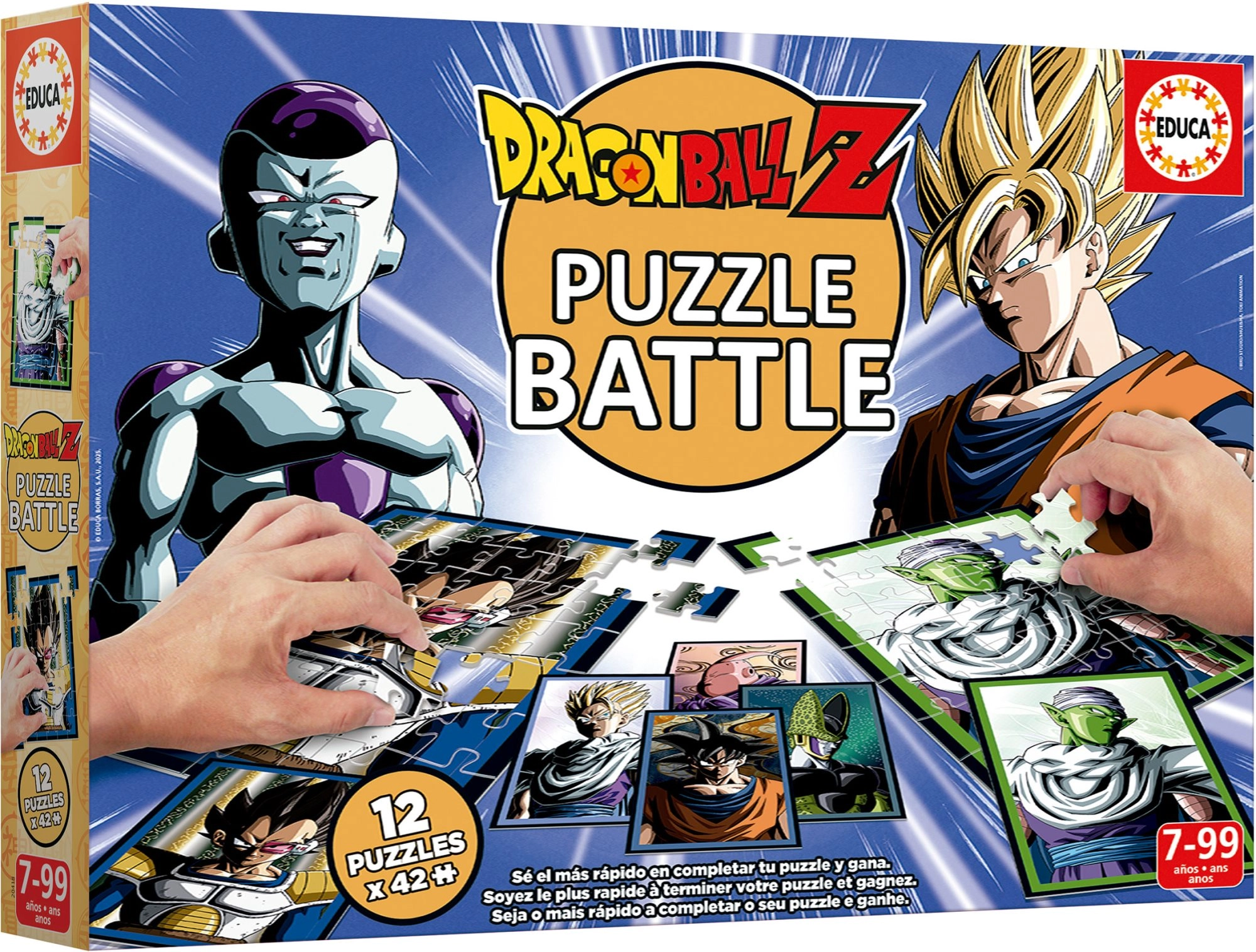 Užite si napínavú puzzle bitku s motívom DRAGON BALL Z od značky Educa. Set obsahuje 12 samostatných puzzle po 42 dielikoch a 12 predlohových kartičiek na rýchle pretekárske skladanie. Skvelé na rozvoj koordinácie oka a ruky, rýchlosti, trpezlivosti a pozorovacích schopností – ideálne na súboj s kamarátmi či rodinou.