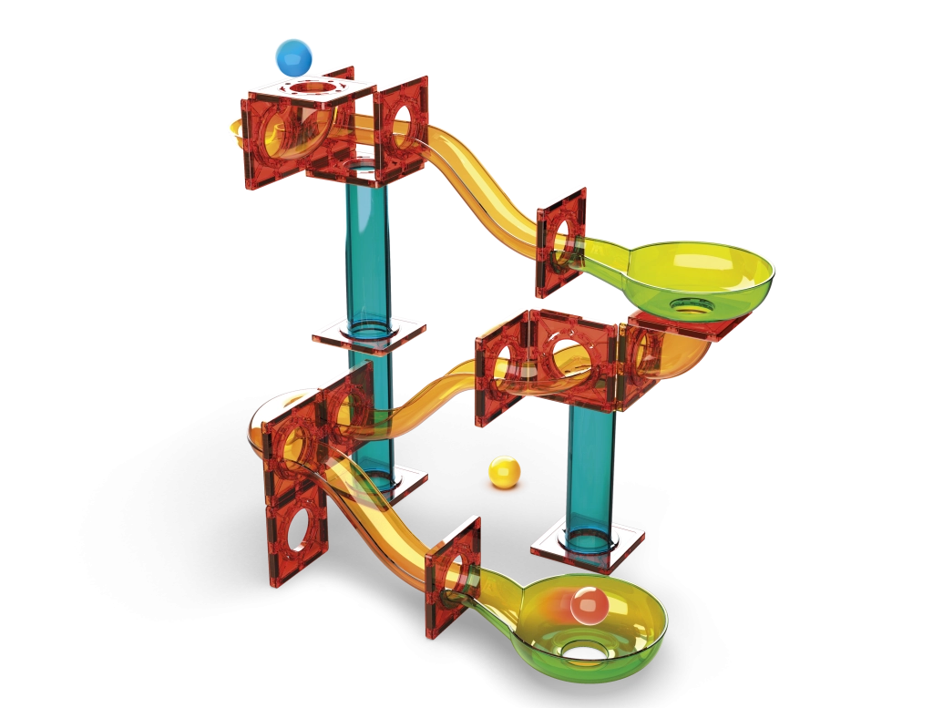 Translucentný plast zvýrazní pohyb guľôčok a podporí pozorovanie rýchlosti, gravitácie aj smeru jazdy. Skvelý vizuálny aj vzdelávací efekt.