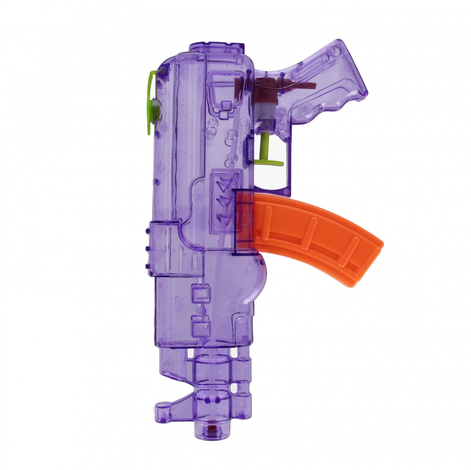 Táto kompaktná vodná pištoľ ponúka skvelý pomer zábavy a jednoduchosti. Vďaka priehľadnému telu vidíte hladinu vody, ergonomická rukoväť sa dobre drží aj menším deťom a spoľahlivá spúšť zaisťuje plynulý prúd. Vyberte si z viacerých farebných variantov a oživte každú letnú hru.