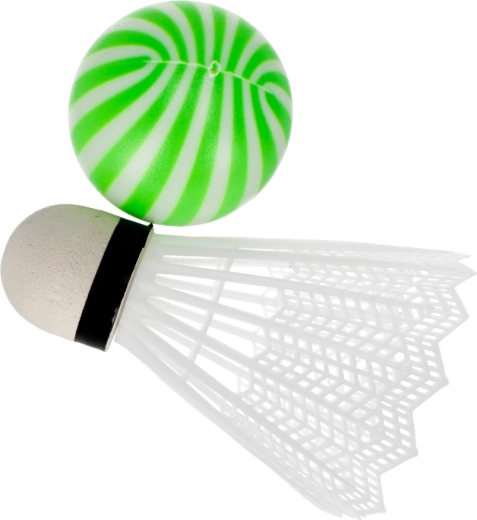 Súčasťou je badmintonový košíček aj mäkká loptička. Deti si môžu vybrať, či chcú hrať ľahký „badminton“ alebo jednoduché pinkanie s loptičkou.