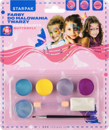 Vytvorte deťom nezabudnuteľné masky a veselé vzory so sadou na maľovanie tváre. Balenie obsahuje 6 farieb (tyrkysová, žltá, svetlofialová, magenta, modrá a bielo-perleťová), štetec a aplikátor na ľahké nanášanie. Farby sú šetrné k detskej pokožke, ľahko umývateľné a ideálne na oslavy, karnevaly a hry, kde podporujú kreativitu a fantáziu.