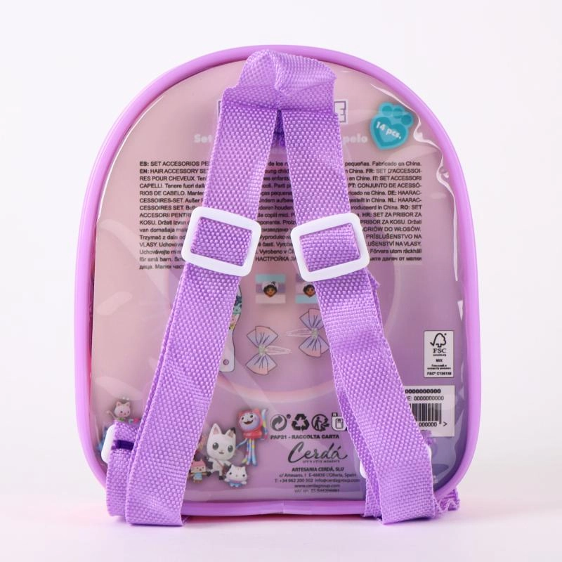 Objavte kreatívny svet GABBY DOLL'S HOUSE s touto kúzelnou sadou vlasových doplnkov v roztomilom batôžku. Deti si zamilujú hru na kaderníčku a jednoducho vytvoria štýlové copíky, vrkôčiky aj slávnostné účesy. Ľahký batôžtek slúži ako praktické uloženie všetkých doplnkov a je perfektný na výlety aj návštevy.