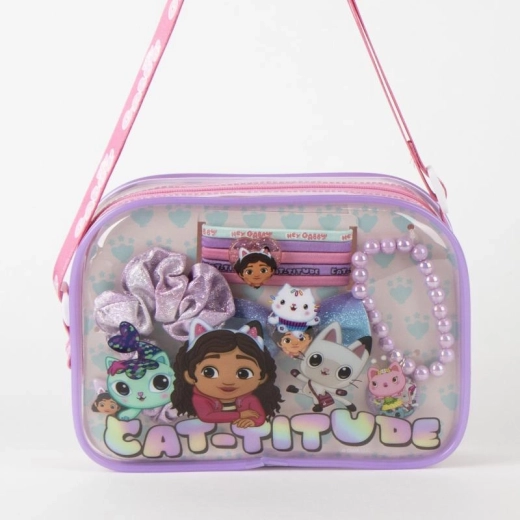 Roztomilá sada vlasových doplnkov v praktickej taštičke poteší všetky malé milovníčky GABBY DOLL'S HOUSE. Nájdete v nej sponky do vlasov, gumičky, štýlovú scrunchie a zladený náramok – všetko pre každodenné účesy aj hravé kombinácie.