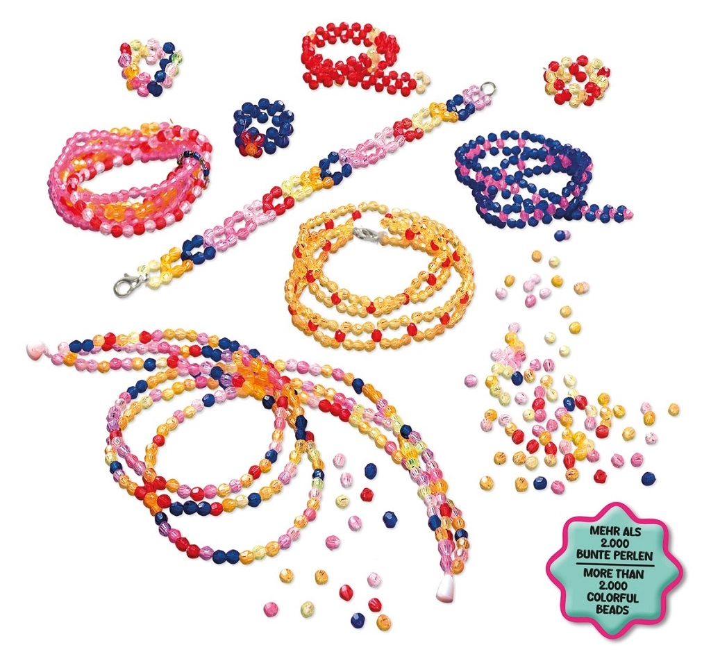 - Viac než 2 000 pestrofarebných korálikov, gumičky, zapínanie