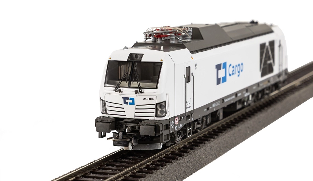 Model dvojsystémovej lokomotívy BR 248 Vectron Dual Mode v prevedení ČD Cargo (epocha VI) realisticky zobrazuje veľké bočné vetracie mriežky, strešné prvky s pantografom a robustné podvozky. Výkonný stredový motor s dvoma zotrvačníkmi zabezpečuje pokojný a plynulý rozjazd aj pri ťahaní dlhších súprav.