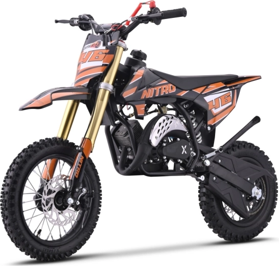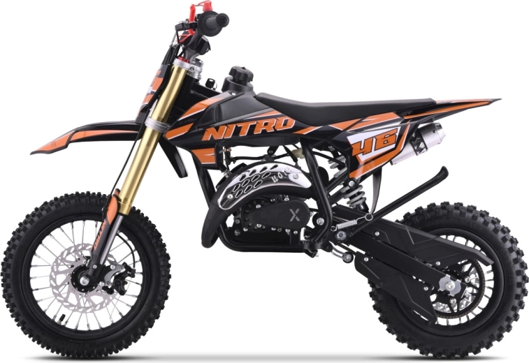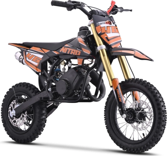 Minicross NITRO 60cc je postavený na práškovou farbou lakovanom oceľovom ráme so zosilnenou zadnou kyvnou vidlicou. Jednovalcový dvojtaktný motor s objemom 60 cm³ a kužeľovým vzduchovým filtrom zabezpečuje svieži záťah, jednoduchú údržbu a spoľahlivú prevádzku. Ručný štartér umožňuje rýchle naštartovanie kdekoľvek.