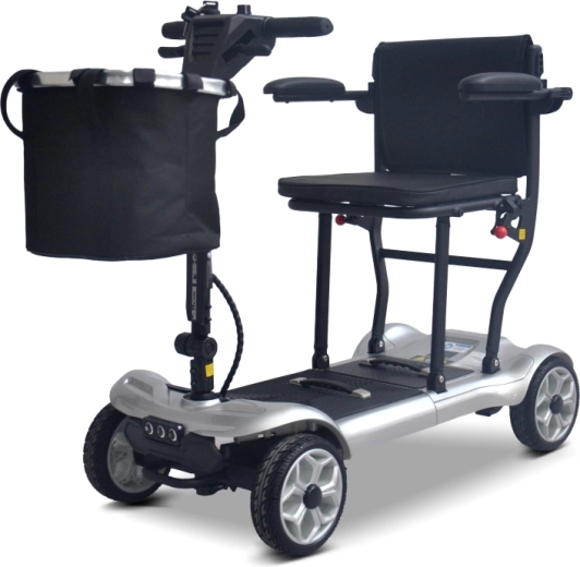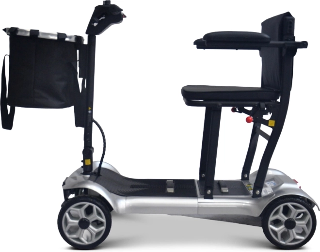 Kompaktný elektrický skúter pre seniorov EasyGo ponúka pohodlný a bezpečný pohyb doma aj vonku. Vďaka štyrom stabilným kolesám, vyberateľnej Li‑ion batérii 24 V 12 Ah a jednoduchému ovládaniu vpred/vzad je ideálny na každodenné cesty na nákup či prechádzky. Pohodlné sedadlo s opierkami rúk, LED osvetlenie a praktický predný košík zvyšujú komfort aj bezpečie pri jazde.