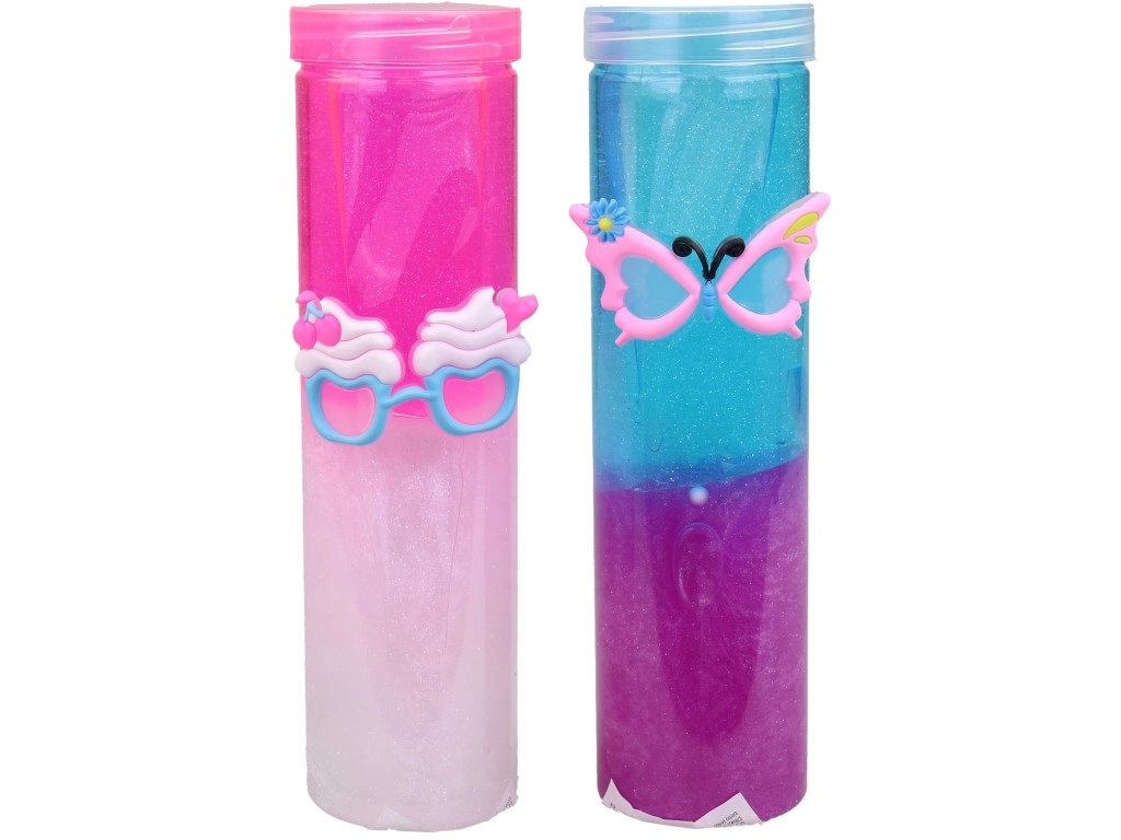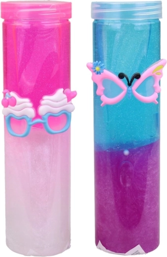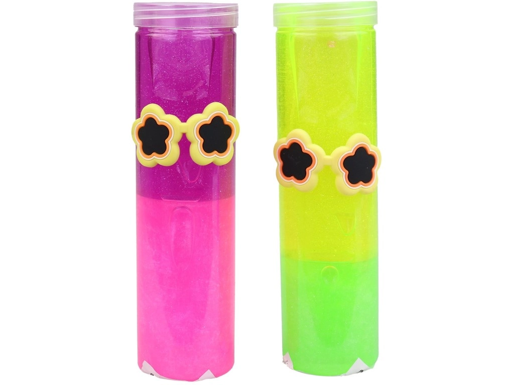 Praktická tuba s výškou cca 19 cm a priemerom 5,5 cm zabraňuje vysychaniu a udržiava sliz v čistote. Niektoré varianty sú ozdobené drobnými klipmi a motívmi (napr. okuliare, motýľ, kvietok), ktoré z neho robia ešte lákavejší darček. Ideálny ako malá pozornosť, odmena či zábava na cesty.