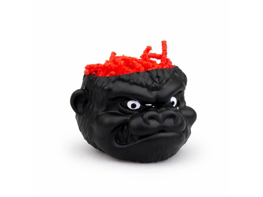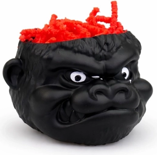 Detailne spracovaná hlava gorily z pevného plastu s penovými prvkami odolá každodennému hraniu a láka k opakovanému používaniu.