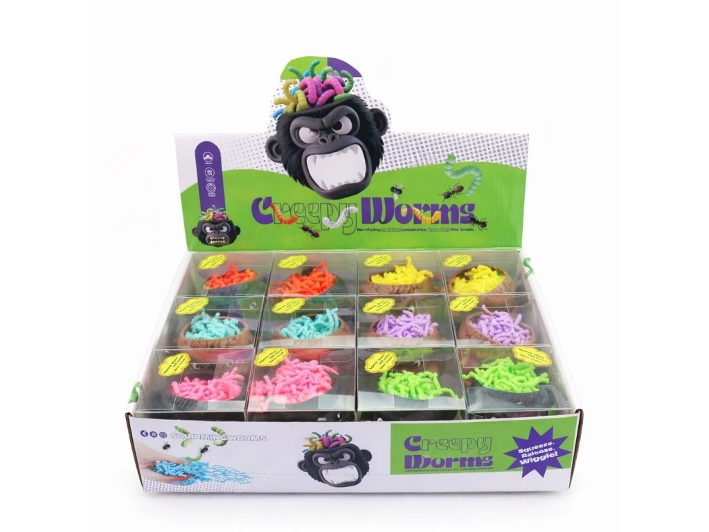 Opičia hlava s „červíkmi“ láka na výrazný dizajn a hmatový zážitok, ktorý podporuje jemnú motoriku a zmyslové vnímanie. Deti môžu červíkov naťahovať, preskupovať a skúmať rôzne textúry – zábava na dlhé chvíle bez obrazoviek.