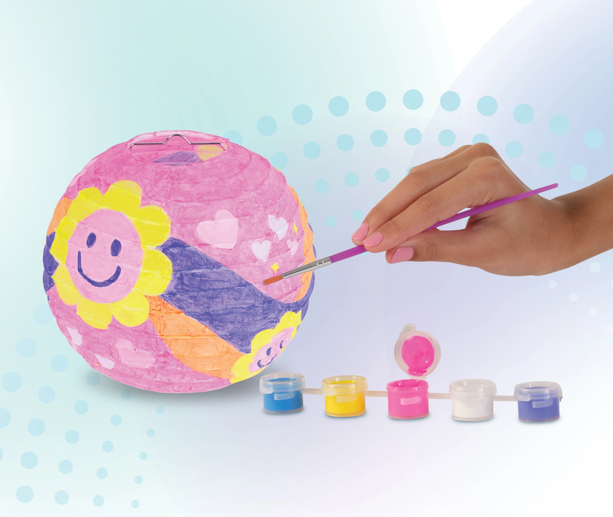 Súčasťou balenia je všetko, čo potrebujete: lampión, 5 akrylových farieb, štetec, expandér s háčikom a návod. Farby možno ľubovoľne miešať a vytvárať originálne vzory, takže každý lampión bude úplne unikátny. Ideálna aktivita na oslavy, prespávačky, narodeniny aj tvorivé popoludnie doma.