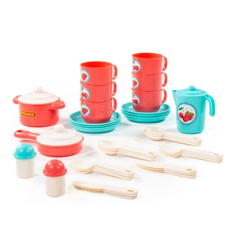 Objavte bohatú detskú sadu riadu Gazdinka s 38 dielmi pre 6 osôb, ideálnu do detskej kuchynky. Podporuje fantáziu, sociálne zručnosti a napodobňovanie každodenných činností pri spoločnom varení a stolovaní s kamarátmi aj rodinou.