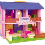 Štýlový ružový domček pre bábiky zo série Play House ponúka deťom pestrý priestor na hranie – od terasy a obývacej izby cez kuchyňu až po izbičky na poschodí. Otváracie okná, dvere a schody robia hru realistickejšou a 14 kusov nábytku s dekoratívnymi nálepkami umožní doladiť interiér do posledného detailu.