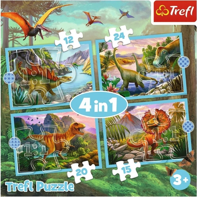 Trefl puzzle 4 v 1 Výnimoční dinosaury je balenie, ktoré poteší každého malého archeológa! Obsahuje štyri rôzne skladačky s motívami dinosaurov, každú s odlišným počtom dielikov (12, 15, 20, 24). Po zložení puzzlí vzniknú štyri obrázky o rozmeroch 285 x 205 mm, čo zaručí zábavu ako pre mladších, tak aj starších fanúšikov puzzle hier.