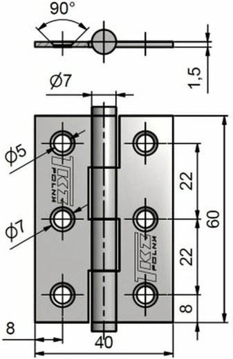 Dverový záves 60 mm je určený na zakovanie do dverného krídla a predstavuje spoľahlivé riešenie pre plynulé a tiché otváranie aj zatváranie dverí. Vďaka zinkovej úprave (Zn) je chránený proti korózii a opotrebeniu, čo zaisťuje dlhú životnosť aj v náročnejších podmienkach.