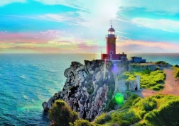 Vytvorte si krásnu scénu s majákom na gréckom pobreží pomocou tohto puzzle. Po zložení má obrázok rozmery 68x48 cm. Vďaka kalandrovanému papieru má puzzle vysokú kvalitu a bezpečnosť pri skladaní zaisťujú ekologické farby.