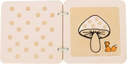 Vďaka kompaktným rozmerom 9 × 9 × 2,5 cm je knižka ideálna na doma aj na cesty. Prírodný materiál je ľahko umývateľný a vhodný na každodenné hranie. Knižka pomáha deťom rozvíjať hmat, zrakovú pozornosť a koordináciu oko–ruka zábavnou formou.