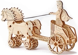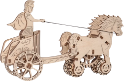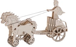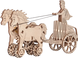 V mene impéria. Stavebnica rímskeho voza s dvojzáprahom, vyrobená z preglejky. Vo verne zobrazenom voze je umiestnená detailne spracovaná figúrka rímskeho jazdca. Vďaka naťahovaciemu mechanizmu je model schopný jazdy, pri štarte vie predviesť vzopätie ťažného dvojzáprahu a prejde až 1 meter. Usporiadajte preteky s ďalšími modelmi Wooden City! Vybavené detailným návodom na zostavenie. Hlavné vlastnosti: 74 precízne vyrezaných dielikov, nízka náročnosť zostavenia, výsledný model je schopný samostatnej jazdy