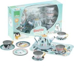 Roztomilá detská čajová súprava od značky Vilac prináša kúzlo hry na čajový dýchánok s jedinečným efektom – konvička pri nalievaní zahrá melódiu. Ľahký kovový set s nežnými arktickými ilustráciami Michelle Carlslund obsahuje 14 dielov v ideálnej veľkosti pre malé detské ruky a podporuje fantáziu, role-play a jemnú motoriku.