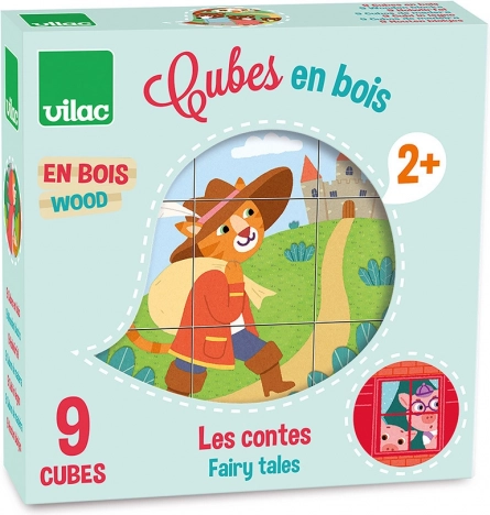 Drevené kocky Vilac Príbehy prinášajú deťom radosť z objavovania a skladania. Z deviatich pevných kociek zložíte šesť rôznych rozprávkových motívov, ktoré rozvíjajú predstavivosť a učia deti sústredeniu. Vďaka pevnému drevu a kvalitnej potlači je hračka odolná a vhodná na každodenné hranie.