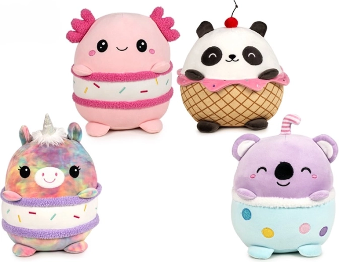 Roztomilé plyšové zvieratká Kawaii Yummies s výškou 20 cm potešia malých aj veľkých. Každý kúsok je z hebkej, mäkkej plyše ideálnej na túlenie a hraní. Kolekcia ponúka jednorožca, axolotla, pandu a koalu, všetky s dôrazom na detail a farebnosť. Vhodné pre deti už od narodenia (0+) – perfektné ako darček pre bábätká aj väčšie deti.