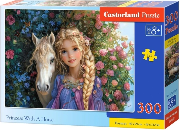 Objavte čaro rozprávkového sveta s puzzle CASTORLAND. Skladačka s motívom princeznej a koňa ponúka 300 dielikov pre príjemné rodinné chvíle aj tréning trpezlivosti. Po zložení má puzzle rozmer cca 40 × 29 cm – ideálna veľkosť na zarámovanie alebo vystavenie v detskej izbe.