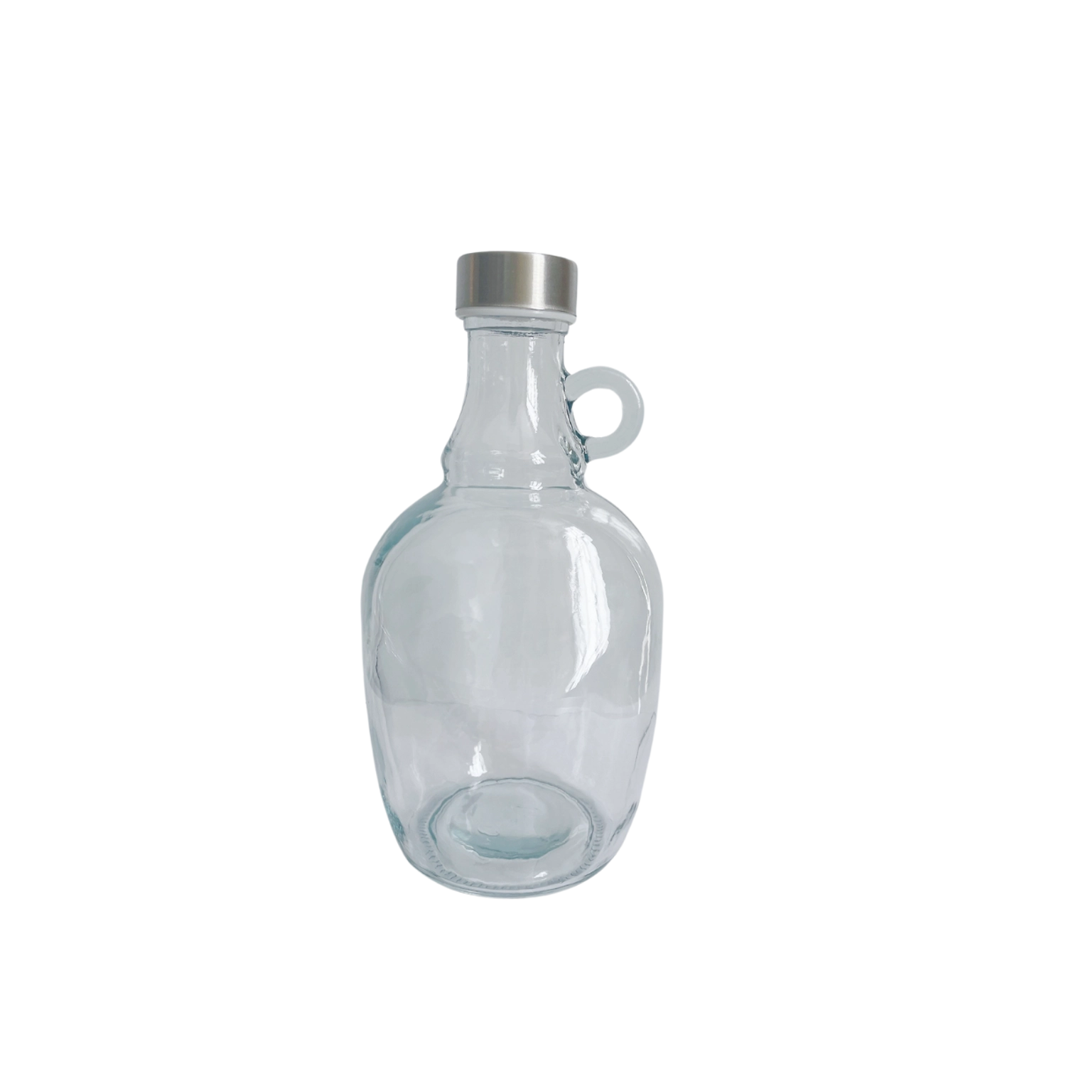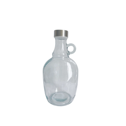 Univerzálna sklenená fľaša s objemom 1 liter s praktickým uchom na jednoduché prenášanie a nalievanie. Vďaka priehľadnému sklu máte prehľad o obsahu aj jeho stave. Súčasťou je kovový skrutkovací uzáver na tesné uzatvorenie, ktoré chráni pred oxidáciou a stratou arómy. Odolné sklo sa ľahko čistí a je vhodné na vína, likéry, sirupy aj oleje.