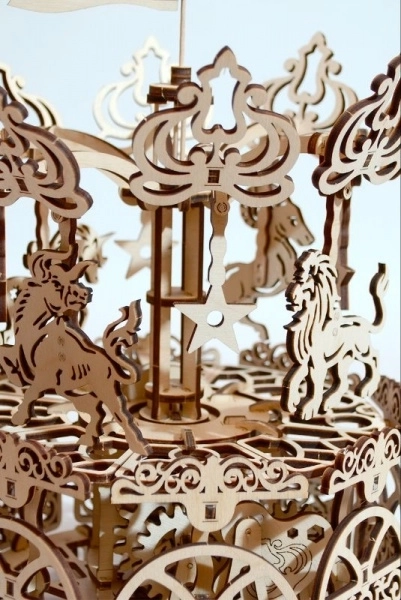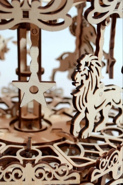 Každý dielik je presne vyrezaný pre hladké spájanie a pôsobivý vzhľad. Ornamenty a zvieracie motívy zvýraznia estetiku klasického kolotoča.