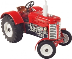 Klasický model traktora Zetor 50 Super v mierke 1:25 poteší zberateľov aj deti. Pohon zabezpečuje pružinový strojček na kľúčik, nechýba štvorstupňová prevodovka, spiatočka, neutrál a ručná brzda. Predná náprava je riaditeľná volantom a kovové prevedenie dodáva hračke skutočnú robustnosť.